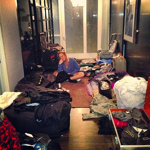 Because everyone knows rehab has become sooo commercialized and it’s really all about how you look and who you meet rather than dealing with the problems that have sent your life into a death spiral, here’s a photo Lindsay Lohan posted of herself on Instagram packing for her stint in rehab with the caption “90 days and 270 looks.” Which works out to three outfit changes a day, but who cares as long as you’re there to beat your demons. Except instead checking into the court-approved Seafield Center in New York this morning like she was supposed to, Lindsay hopped a private jet to LA where I presume that now that she’s packed everything she owns she’s off  to North Korea to begin a torrid affair with Kim Jong Un. From TMZ: